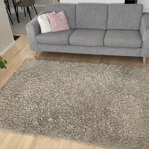 Pellavansävyinen ryijymatto, hieman kimaltaa nukka
