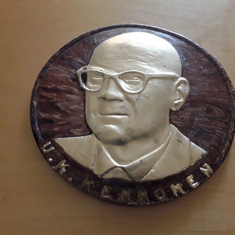 Knud Kyhn, mammutti, kivitavarafiguuri, vihervä+ruskea, painava