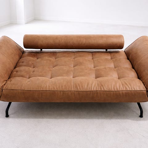 ”Moderneja trendejä ja glamour-aksentteja täydellisesti yhdistelevä vuodesohva on ihanteellinen lisä mihin tahansa moderniin tai perinteiseen olohuoneeseen. Se on verhoiltu kestävällä mutta pehmeän tuntuisella samettikankaalla, jota täydentävä kuparinen metallijalusta antaa sohvalle omaleimaisen kiillon. Helposti alas napsautettavan selkänojan avulla sohva muuntuu hetkessä mukavaksi vuoteeksi. Lisäksi sohvan mukana toimitetaan kaksi koristetyynyä, jotka lisäävät mukavuutta.”
