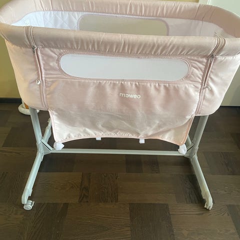 Moweo-merkin käytännöllinen sivuvaunusänky pehmeällä, topatulla patjalla. Pakkaukseen sisältyy näppärä säilytyslaukku. Sängyssä on tyylikkäät, puiset jalat, jotka antavat sille modernin tyylikkään ilmeen.