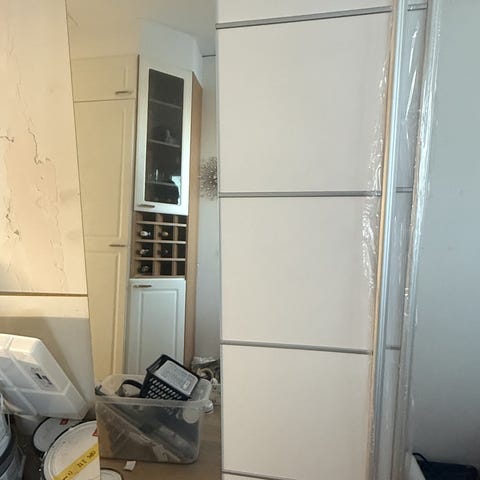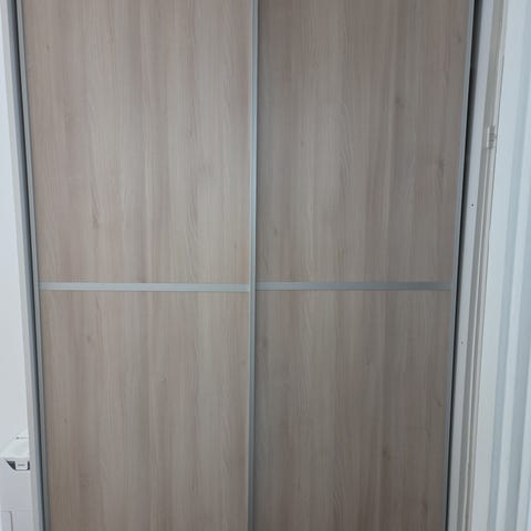 Liukuoviseinä, leveys 2,65 metriä, korkeus 2,4 metriä.