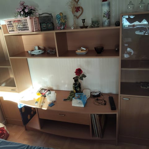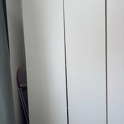 Annetaan hyväkuntoinen, mökkikäytössä ollut liukuovellinen vaatekaappi. Toisessa ovessa peili. Toisella puolella vaaterekki ja hyllyjä, toisella puolella hyllylevyjä. Kaappi täytyy purkaa kuljetusta varten. Vain nouto Kuopion Kolmisopesta! Nouto onnistuu vasta vähän myöhemmin keväällä lumien sulettua.