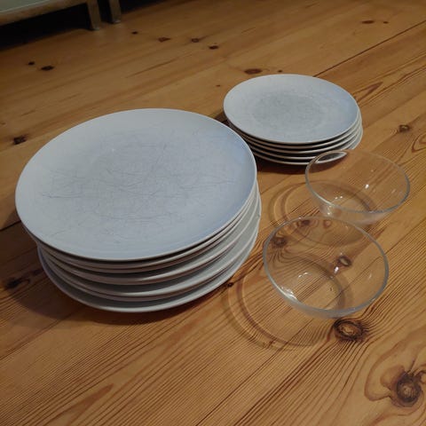 Kuvan mukaiset astiat. Asunnon tyhjennyksen alta. Astioita pari pahvilaatikollista, pitää viedä kaikki, ei voi valita.