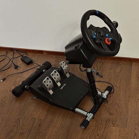 Toimivia setti, mutta hieman esteettisiä puutteita: keskiön tarra uupunut, siihen laitettu kello tilalle (patteri lienee vaihdon tarpeessa), vaihdekepin päälliskoriste puuttuu. Pikakiinnikkeet ratista puuttuu, mutta saa alapuolelta pulteilla kiinni.