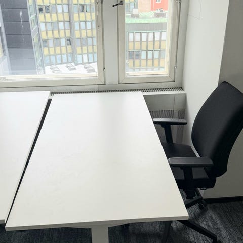 Erittäin hyväkuntoinen Isku toimistosarjaa oleva laadukas sähköpöytä, valkoinen 120 x 70 ja Isku Still Light työtuoli 28/29. Monipuoliset säädöt.