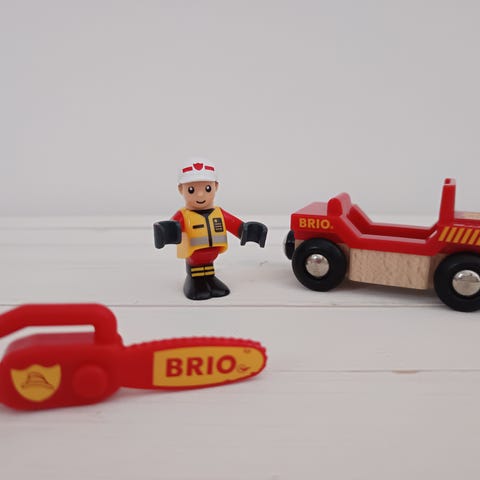 BRIO Rescue Action Tunnel Kit leikkijunasetti. Pakkaus sisältää pelastusteemaisen tunneliosan, kaarevan muovisen ratapalan, paloauton sekä liekkikoristeen. Setti on yhteensopiva BRIO World -puujunaratojen kanssa ja soveltuu noin 3-vuotiaille ja sitä vanhemmille lapsille. Materiaaleina muovi ja puu. Veturi on magneettikiinnitteinen, ja yhteensopii kaikenlaisten vaunujen kanssa.