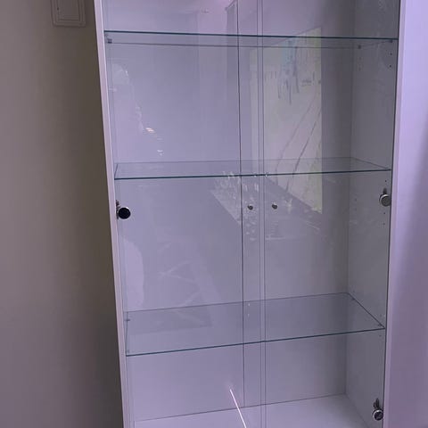 Myydään lasivitriini (ilman sisältöä). Mitat 186cm x 79cm.