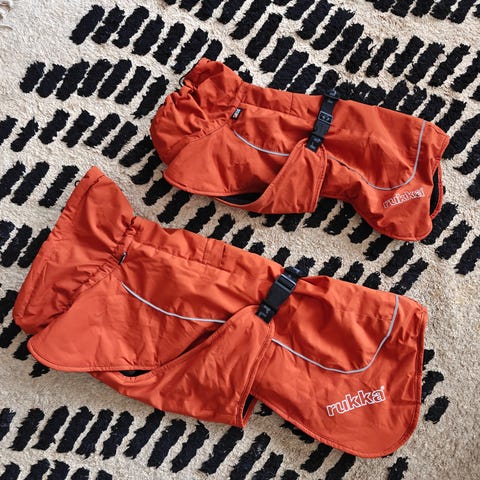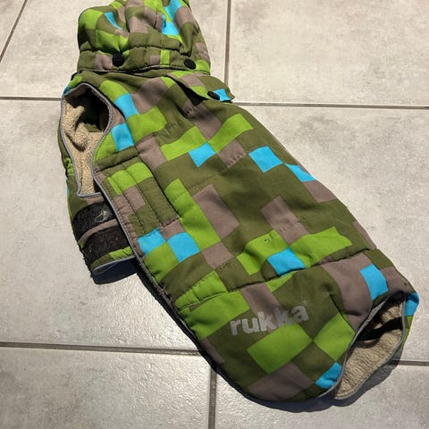 Musta Rukan takki. Koko 45. Jalkalenkit takana. Fleecevuori.