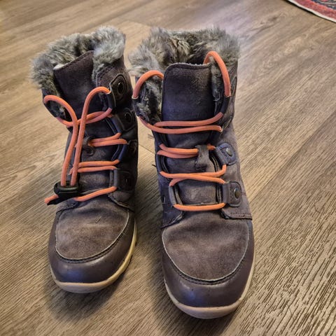 Myydään tyttöjen Sorel talvikengät/loskarit, koko 33. Kengissä on pinkki varsi ja musta kuminen alaosa. Pohjissa on karkea kuviointi, joka lisää pitoa liukkaalla alustalla. Soveltuvat kylmään säähän ja loskakeleihin.