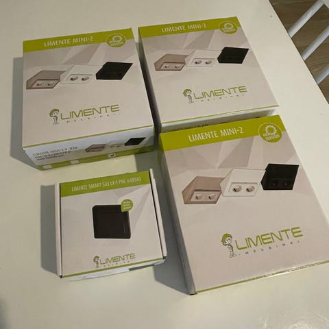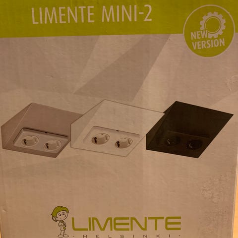 Limenten pintaan asennettava valkoinen Mini-2-kaksoispistorasia, joka on varustettu lapsisuojalla. Pistorasian ulkonäkö on yhteensopiva Limenten Mini-sarjojen valaisimien kanssa, mutta värinsä puolesta se sopii hyvin käytettäväksi ylipäätään valkoisten keittiövalaisinten kanssa. Pistorasia tarvitsee aina oman virransyötön.
