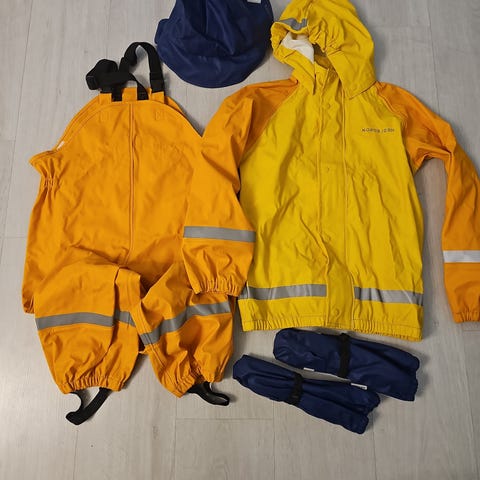 Myydään hyväkuntoinen, Nordbjorn-merkkinen, fleecevuorellinen sadeasu. Koko 134/140.