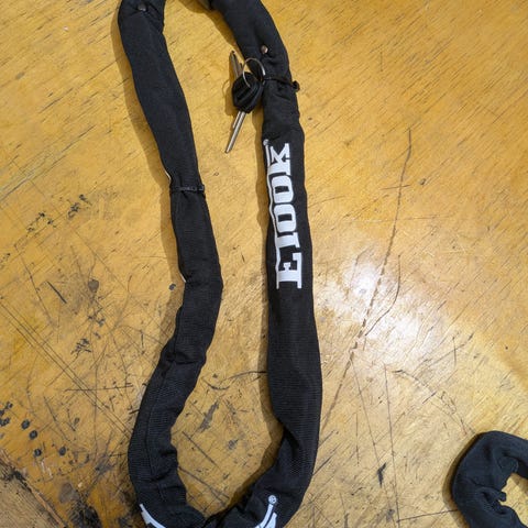 Musta, laadukas, pitkä, uudenveroinen esim. pyörän ketjulukko / runkolukko. Pitkä ja kestävä ketju.