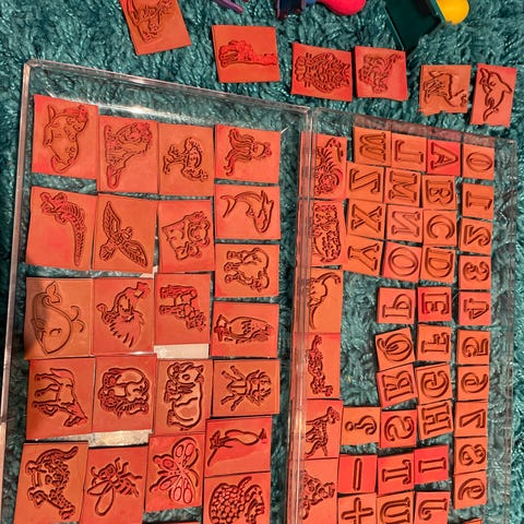 6kpl kuviosaksia eri kuvioilla, 23kpl vahaliituja (rasiasta puuttuu yksi). Vahaliiduista muutamaa kokeiltu ja pari katkennut.