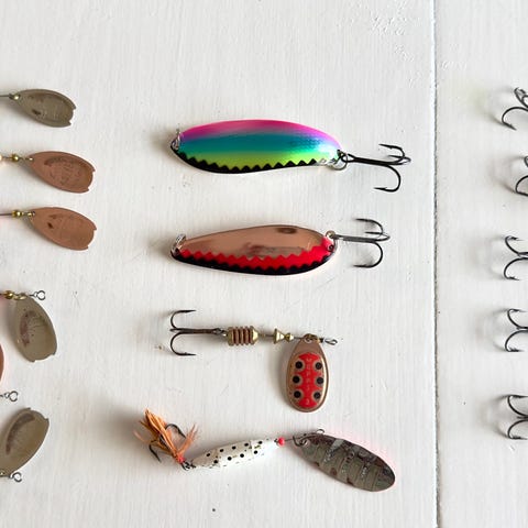 Kuvassa näkyvät uistimet, Abu Garcia, Hi-lo, Rapala, Mepps, Storm ym. 12 kpl uusia/uuden veroisia (1. kuva) ja neljä tuunattua (maalattuja hi-loja ja Kuusamo). Ottivieheitä. Nouto tai toridiili.