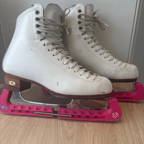 Terät Riedell GR4, joissa säilytyksestä pientä pintaruostetta. Teroitettavissa ja täysin käyttökelpoiset.