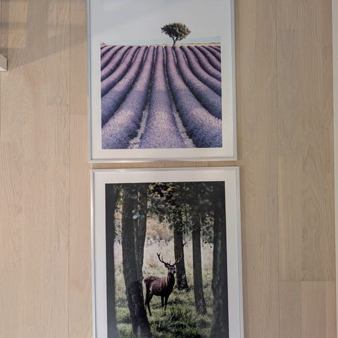 Kaksi sisustustaulua, joissa juliste hopeanvärisissä kehyksissä. Teemana Villi Länsi: luodit ja Jesse James.