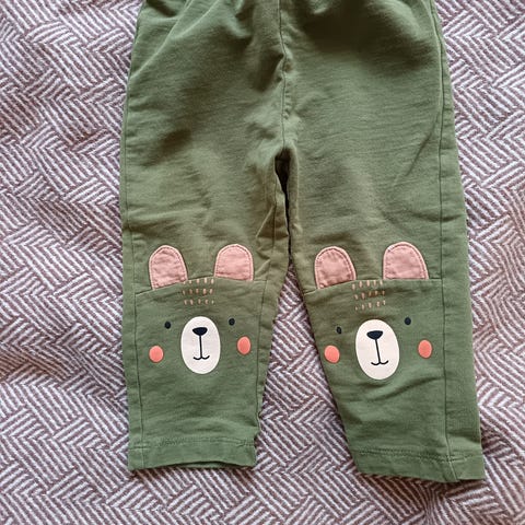 Vihreä t-paita surffiautokuvalla (Fagottino) ja ruskea kirahvibody (Kappahl). Paita kokoa 80 ja body kokoa 74, mutta käytetty samaan aikaan.