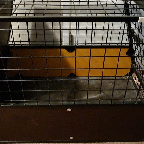Koiran kuljetushäkki takakonttiin, kaksiosainen malli. Materiaalina alumiinirunko ja harmaat levyosat. Häkissä on kaksi erillistä ovea, jotka avautuvat eteenpäin. Ylä- ja sivuosissa on kalterit ilmanvaihtoa ja näkyvyyttä varten, alaosat ovat umpia. Häkki on muotoiltu takakonttiin sopivaksi, takaviisto rakenne. Sopii kahden koiran kuljettamiseen auton tavaratilassa, kun mitat tarkistetaan omaan autoon sopiviksi.