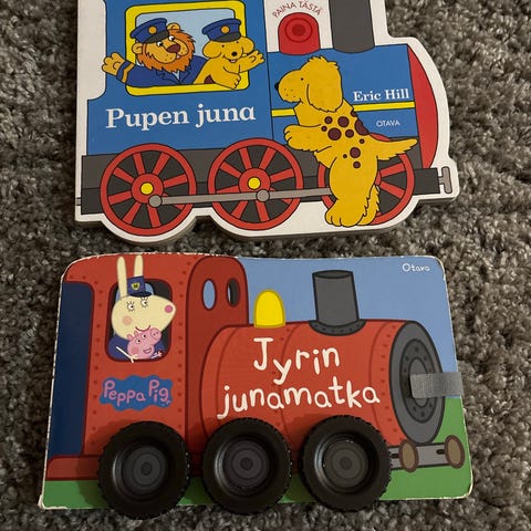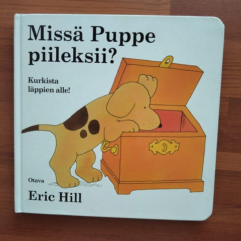 Eric Hill Puppe -äänikirjat lastenkirjat. Kaksi kovakantista kirjaa: "Kukkuluuruu, Puppe" ja "Puppe huristelee". Kirjoissa on värikkäät kuvitukset ja sivussa painikkeet, joista kuuluu ääniä. Sopii pienille lapsille ensikirjoiksi ja ääni- sekä kuvakirjoiksi. Kirjoja luettu paljon (kirjaston pistokirjat), mutta jos korjaukset ja teippaukset eivät haittaa, niin mukavaa tekemistä lapsille. Myydään pakettina, yhteensä 5€