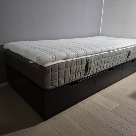 Sängyn alla tilavat ja hyvin liukuvat sängynaluslaatikot.