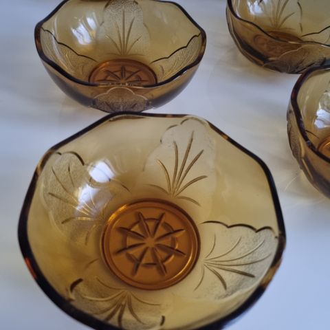 Vintage jälkiruokakulhot 6kpl, ruskeaa lasia
