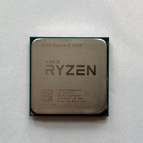 AMD Ryzen 5 2600 prosessori. AM4‑kantaan sopiva prosessori. Otettu koneesta pois toimivsns päivityksen tieltä.