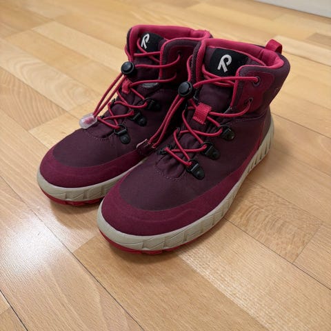 Reimatec välikausikengät. Kerran meillä jalkaan käyttöön ehtineet kengät eli erinomainen kunto. Kenkien koko 34.