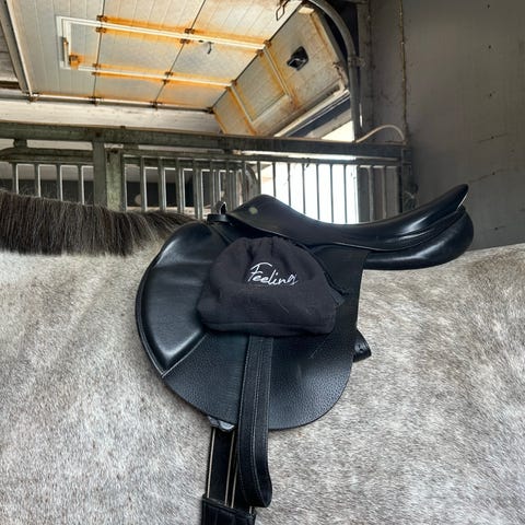 Suorahkoon selkään. Enemmän käytetty, mutta vielä ihan siisti käyttöön. Toisen puolen jalustinhihnan lenkki puuttuu.