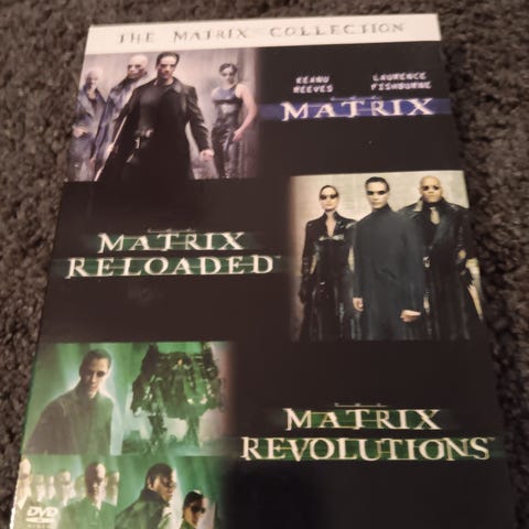 Matrix Collection Blu-ray -elokuvapakkaus. Kokoelmaan sisältyy The Matrix, Matrix Reloaded ja Matrix Revolutions -elokuvat sekä erillinen Matrix Revolutions -Blu-ray. Suomijulkaisut. Matrix revolutions on uusi, vielä muoveissa.