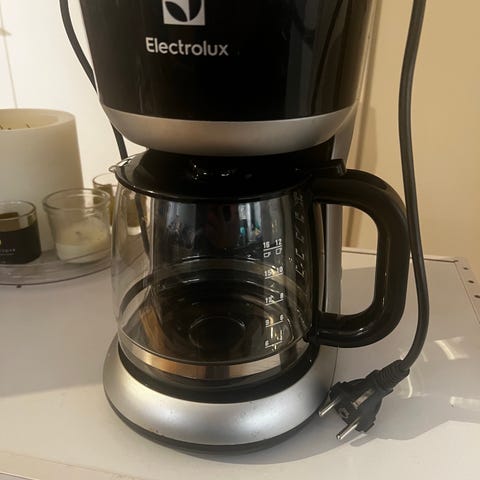 Electrolux kahvinkeitin, jossa teräksinen runko ja lasikannu. Laitteessa on selkeä vesimäärän mitta-asteikko sivussa sekä etupaneelissa painikkeet eri toiminnoille. Sopii suodatinkahvin valmistukseen kotiin tai toimistoon. Sähköjohdon voi kytkeä tavalliseen pistorasiaan. Väri pääosin harjattu teräs mustilla yksityiskohdilla. Toimii täydellisesti