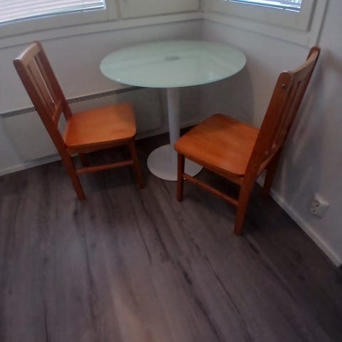 AYTM pöytä pyöreä puinen kromi teräs jalat.