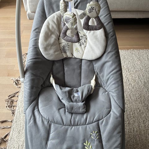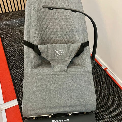 Kinderkraft babysitteri vauvalle. Istuinosa on vaaleanpunainen ja runko harmaa. Babysitterissä on turvavaljaat ja yläosassa roikkuu pehmeitä leluja vauvan viihdyttämiseen. Jalustassa on ohjauspaneeli, jossa on säätönappi ja painikkeita keinunnan ja äänten tai musiikin ohjaamiseen. Mukana tulee virtajohto tai liitäntäjohto ohjausyksikköön. Soveltuu vauvan lepäämiseen ja rauhoittamiseen kotikäytössä.
