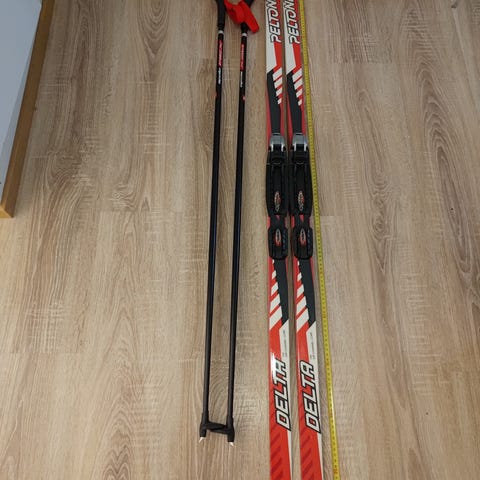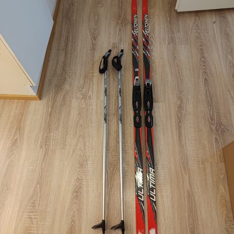 Hyvät vähän hiihdetty sukset 170 cm ja sauvat 150 cm.