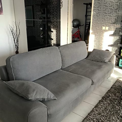 Erinomaisessa kunnossa oleva 3 istuttava GEDVED harmaa sohva myydään pois uuden tieltä