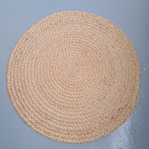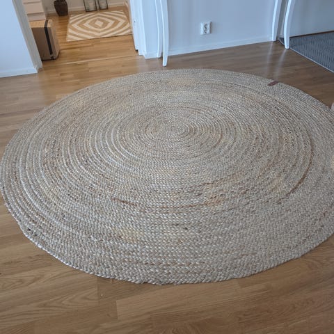 Käyttämätön pyöreä juuttimatto mynnissä, ostettu mutta en koskaan käytetty.