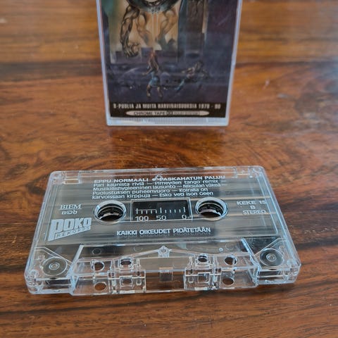 Eppu Normaalin, Onko vielä pitkä matka jonnekin? live-CD. Live-äänite, jossa on useita yhtyeen kappaleita konserttiversioina. mukana alkuperäinen kotelo sekä kansiovihko, joka on kastunut osittain, itse levy kuitenkin hyvässä kunnossa.