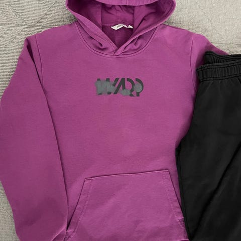 Siistikuntoinen tyttöjen vaatepaketti. Tummansininen velour hupparitakki, ja muuta collaripaitaa. 4 toppia ja 1 pitkähihainen. Trikoot joissa lahkeensivussa tekstinauhat, harmaat peruscollegehousut ja paperbag vyötärö farkut