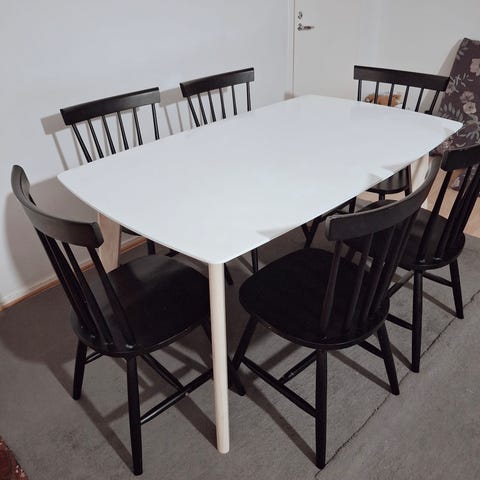 Tästä hyvä ruokapöytä 4-6 henkilölle.