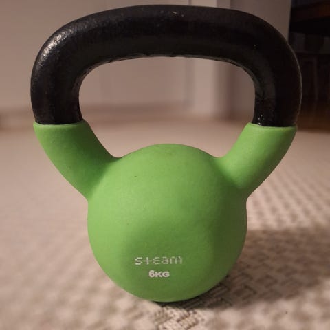 Myytävänä pinkki/musta kahvakuula. 4 kg. VARATTU.