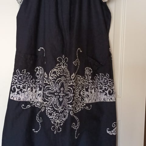 Anna Field mama kesämekko naisille, koko L. Mekko on musta ja valmistettu polyesteristä. Yläosassa on kuviollinen kangas ja pitkät hihat, alaosa on yksivärinen musta. Mekossa on vyö samalla kuosilla kuin yläosa. Sopii arki- ja juhlakäyttöön vuoden lämpimämpiin vuodenaikoihin.