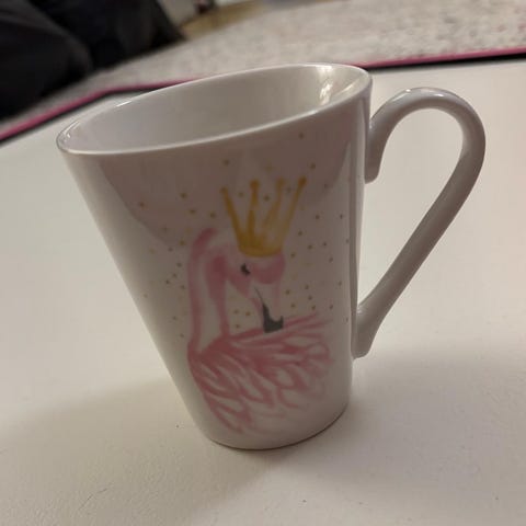 Käyttämätön kuppi, jossa on kuva keijuista.