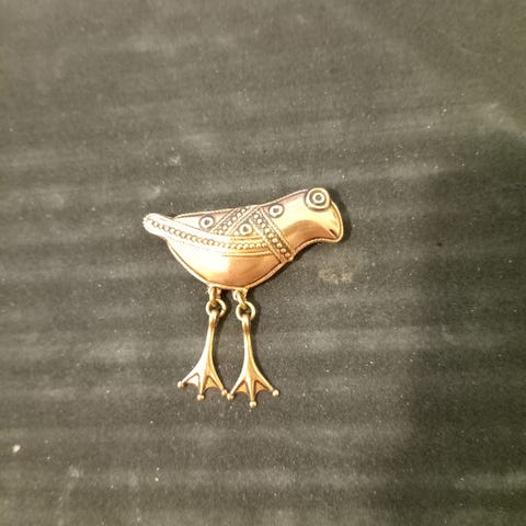 Kalevala naisten korusetti. Settiin kuuluu linturiipuksella varustettu kaulakoru sekä saman sarjan riippuvat korvakorut. Korut ovat metallinväriset ja niissä on koristeellinen lintuhahmo.