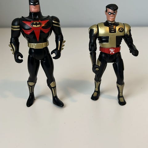 Batman ja jokeri figuurit. Siistikuntoiset molemmilla vasemmassa jalassa merkintä DC.
