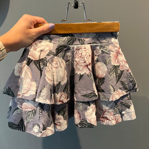 Juhlava kukkahame /tyllihame koko 116cm. Kelloma7nen helma kukkakankaasta. Alla vuorihame ja helmatylli. Ehjä ja hyväkuntoinen, kaunis juhlaan. Yhdessä kohdassa helmassa pieni tahra, katso kuva. Sitä ei kuitenkaan juuri huomaa.