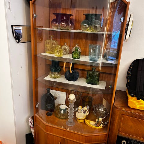 Tosi siistissä kunnossa oleva lasivitriini.