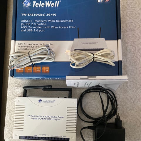 myydään TeleWell TW-EAV510 v2 modeemi/reititin. Toimii kuin pitää, mukaan virtajohto. Nouto tai postit 😊