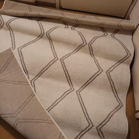 Rustan mustavalkoinen marmorikuvioinen matto.