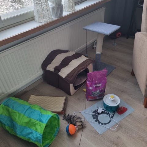 Hyvä, tukeva puu muutoin, ylätasanteen päällikangas repeillyt. Ollut lasitetulla parvekkeella kakkospuuna. Nouda pois!