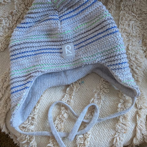 Hyväkuntoinen vauvan valkoinen heijastava pipo. Merkki: Reima. Koko: 44/46 cm.