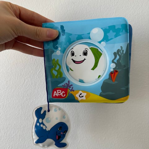 Hyväkuntoinen vauvan kylpykirja. Kansi vaihtaa väriä, kun upottaa veteen.